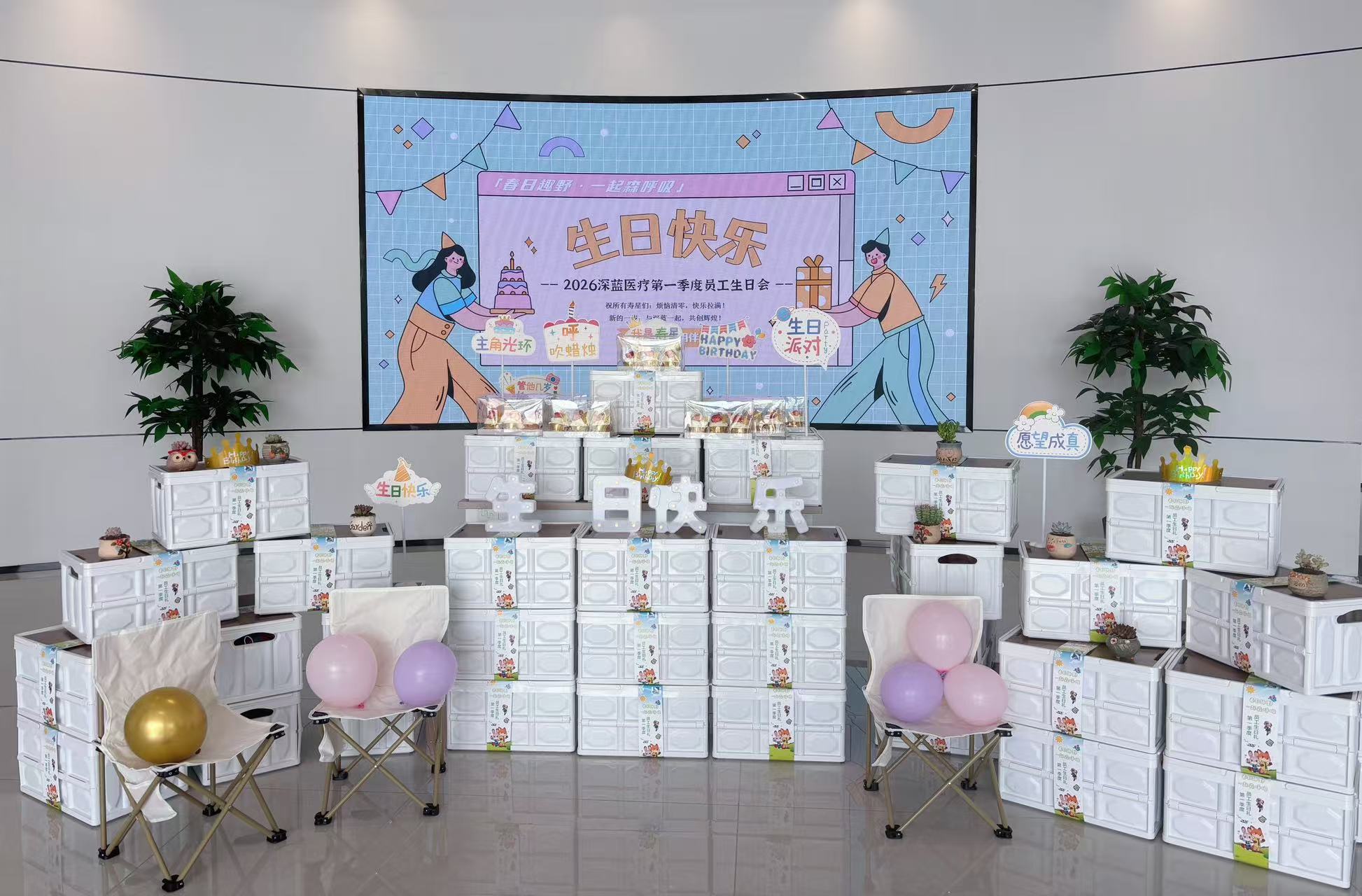 四月的最后一周,春天像是赶着交作业一样,终于把暖阳和微风送到了我们身边。就在这样一个普通的工作日下午,公司一楼大厅悄悄“变身”了。没有草地,没有帐篷,但我们办了一场属于第一季度的「春日趣野·一起森呼吸」生日会。简单,但很春天。